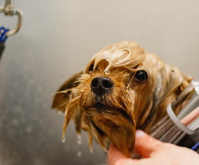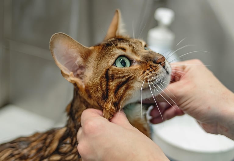 Yıkama ve Durulama: Köpek/kediye özel şampuan ve kondisyonerlerle suyla yıkama, mantar veya kepek gibi sorunların giderilmesi için uygun ürünlerin kullanımı.